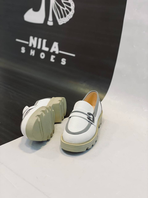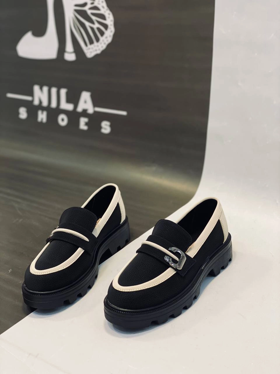 کفش کالج 2رنگ پاخوری عالی جنس چرم صنعتی در رنگبندی جذاب مشکی کرم و سفید طوسی زیره پیو کیفیت درجه1 در سایز بندی 37تا40