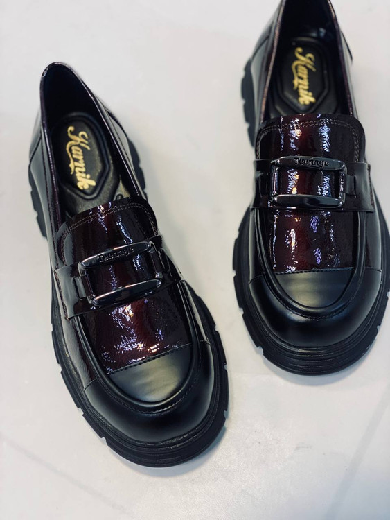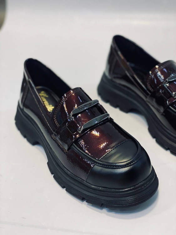 کفش زنانه لوفر لژدار پاخوری عالی جنس ورنی براق درجه1 زیره پیو یراق خارجی در رنگبندی جذاب مشکی و زرشکی در سایزبندی 37تا40